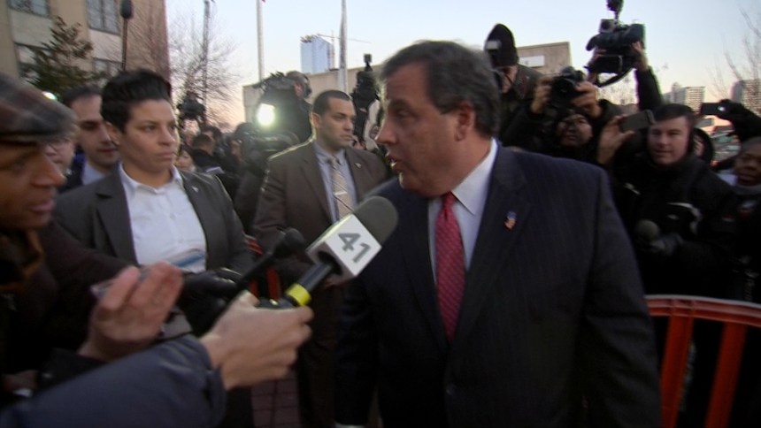 New Jersey Governor Chris Christie leaves city hall in Fort Lee, Jan. 9, 2014. REUTERS