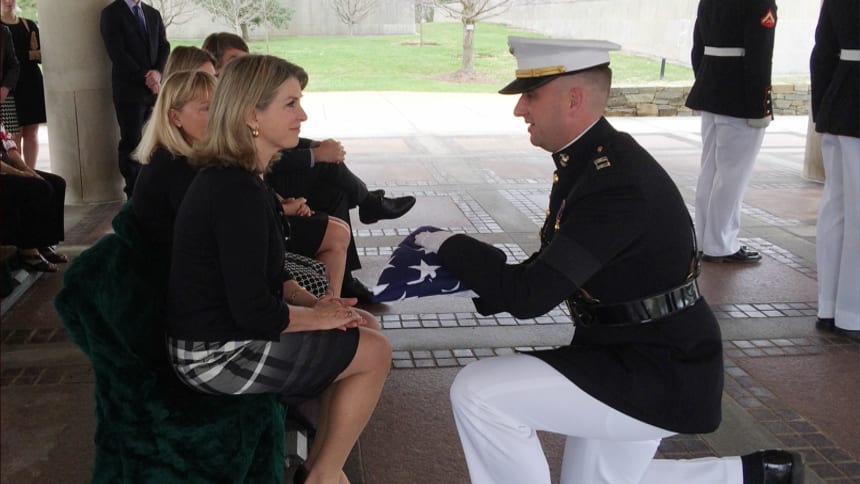 I will never forget the words spoken to Kathleen as she sat there with her brothers and sisters, her being the oldest. “Semper Fidelis,” the young man said as he kneeled before her, taking off his white glove to express the personal commitment held true through all the years.