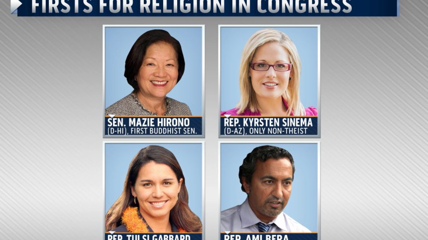 Not only has Congress inducted more women, minorities and members of the LGBT community than ever before, but it also welcomed a Buddhist, a non-Theist, a Hindu, and a Unitarian Universalist. According to an October Pew Research Center Study, the shift in Congress follows changing religious attitudes in America.