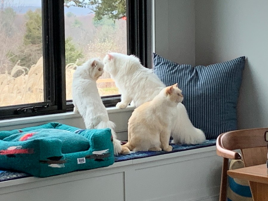 They can be a lot of work, but when I see Petey who used to be afraid of his own shadow, watch the snowplow come by without flinching, or see Midgie sleep on her side, which used to be too painful because of her jaw, or Norm covering up Midgie and Petey’s poop and pee in the litter box (having lived in the wild, Norm knows that if you don’t bury, other animals can track your scent so he is protecting them!) – I know there are few things in my life I’ve ever done that are more important.