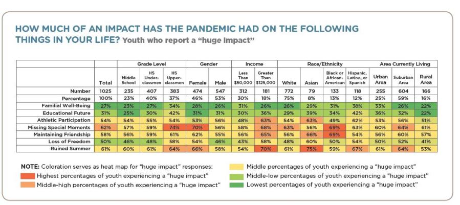 61 percent are experiencing a huge impact when it comes to having summer plans cancelled, along with activities outside school, such as camping, scouting, religious activities, sports, and clubs. A chunk of their adolescence has vanished.