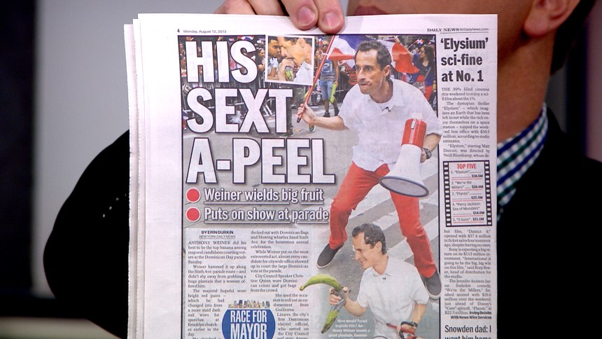 Weiner, who resigned in 2011 after confessing to sending a sexually suggestive tweet to a college-aged woman, was in first place for mayor at one point. But he recently sunk to fourth among Democratic voters following new sexting revelations.