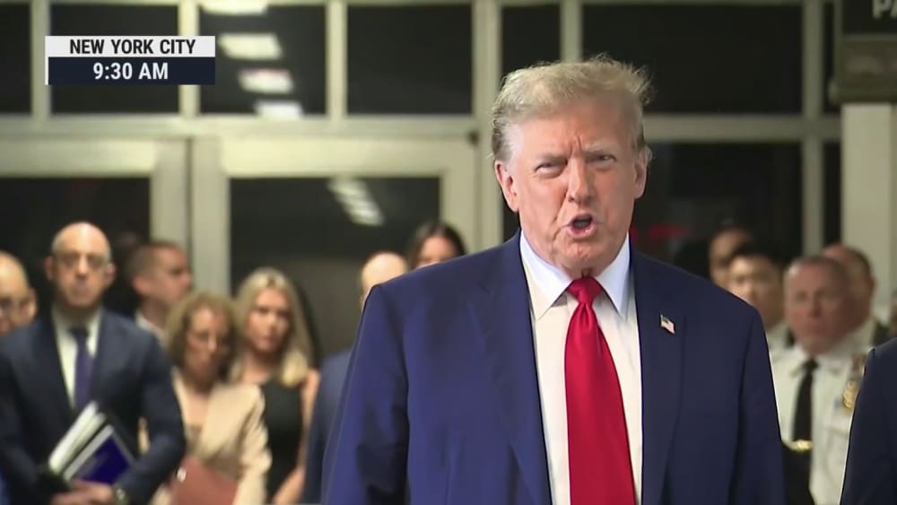 ‘An assault on our country’: Trump speaks ahead of historic criminal trial