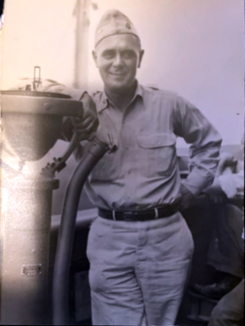 U.S. Navy Captain Ken Ringle commanding the USS Wasatch in the South Pacific in 1945 during World War II