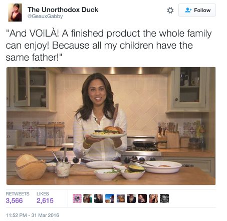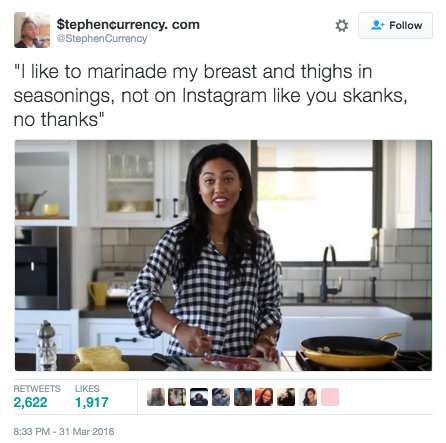 Multiple tweeters have taken to using images of Curry preparing meals on her show “At Home With Ayesha” and adding captions which take potshots at supposedly inferior women: