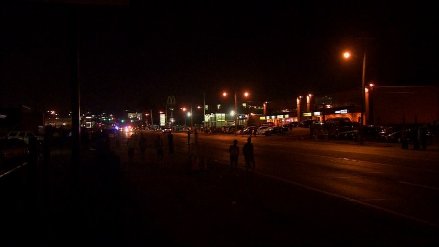 Meanwhile, across town, on W. Florissant Ave, the roads are still closed, but the mood is much calmer than on previous nights.