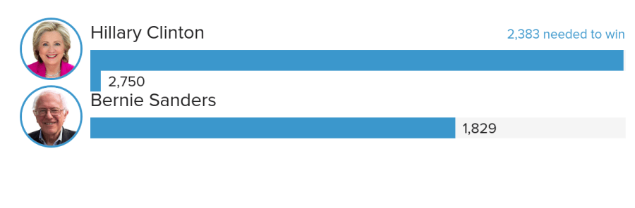 In pledged delegates, Clinton currently holds a lead of 315 delegates (was 292 before last night)