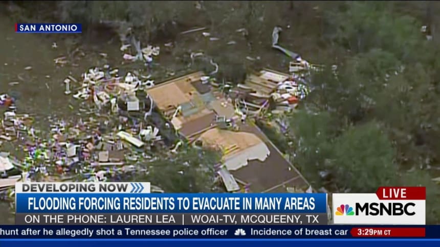 Homes were ordered evacuated along the San Marcos and Blanco rivers, authorities said.The Blanco River, where a house with nine people inside was swept away in May, surged to more than 26 feet, or 13 feet above flood stage, on Friday. The river later subsided.