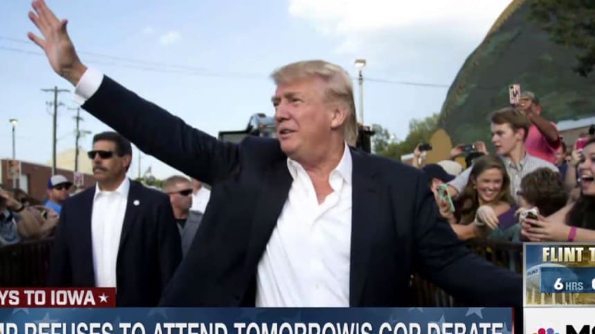 “We’ll watch the debate,” Trier said later by phone, adding that he wasn’t pleased to see Trump skip the Des Moines debate. “There’s always that chance that that one thing will happen and change your mind, and I think that’s what Trump’s trying to prevent, he’s trying to sneak out without that happening.”