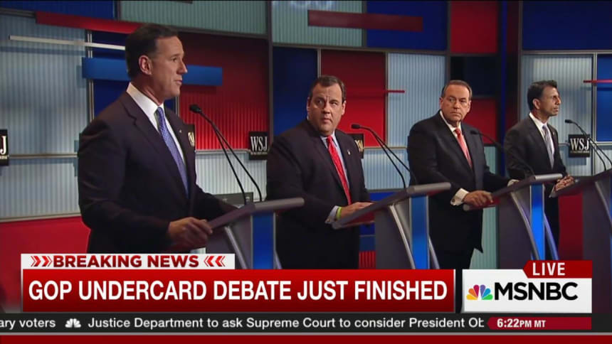 The event was the fourth “kids table” debate to feature lower polling candidates, but the organizer’s stricter requirements shook up the lineup. Both Christie and Huckabee were pushed off the main stage while Sen. Lindsey Graham, former New York Gov. George Pataki, and former Virginia Gov. Jim Gilmore missed the cut entirely.