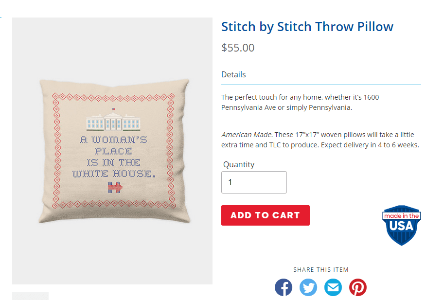 2. “A woman’s place is in the White House” throw pillow