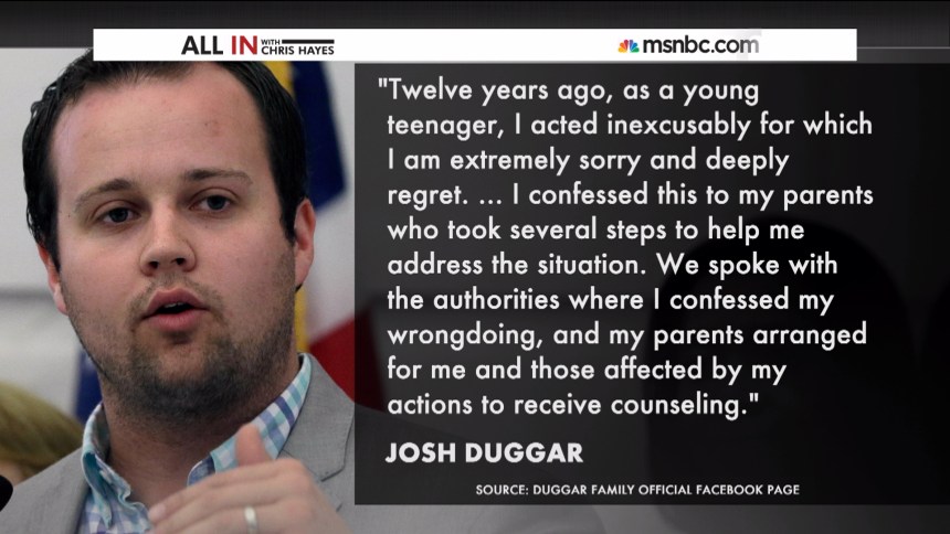 The allegations against Duggar, now 27 years old, were first reported by In Touch magazine, which published a police report Thursday obtained through a Freedom of Information Act request. The report alleges multiple instances in which Duggar molested underage girls when he was a teen. It also states that Duggar’s father, Jim Bob Duggar, waited more than a year to contact police after his eldest son confessed to sexually molesting several female minors.