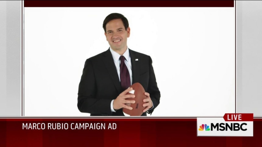 In the new ad, Rubio says he was more nervous for his first college football game than the first GOP debate, “’cause you were actually gonna get hit, no one was gonna hit me at the debate.”
