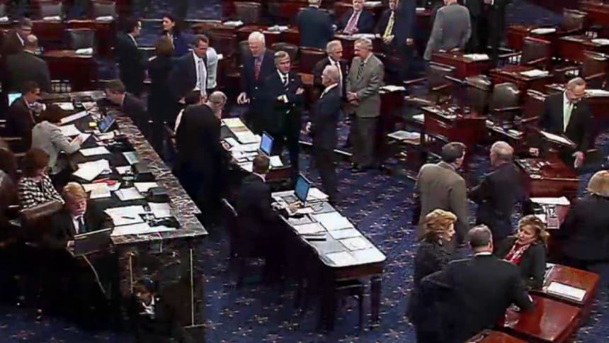 A $1.1 trillion spending bill facing intense opposition from progressives and tea partiers is headed for a critical vote in the Senate late Saturday night. At the same time, the Senate removed the immediate threat of a government shutdown by passing a short-term bill in the afternoon that will allow the government to function through Wednesday.