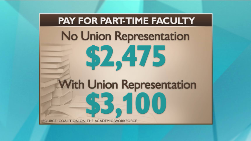 As the cost of attending college continues to rise, a growing majority of professors teaching classes are working part-time for low wages, few or no benefits, and with negligible job security.
