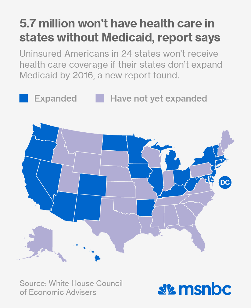 More than five million Americans won’t have health insurance coverage if their states don’t expand Medicaid by 2016, a new White House report found.