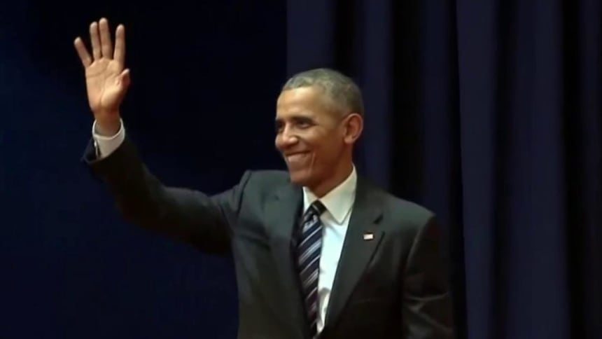 In a visit to an Indiana town that has seen a huge drop in unemployment during his administration, President Obama aggressively defended his policies and blasted Donald Trump, calling one of the real estate mogul’s proposals “crazy.”