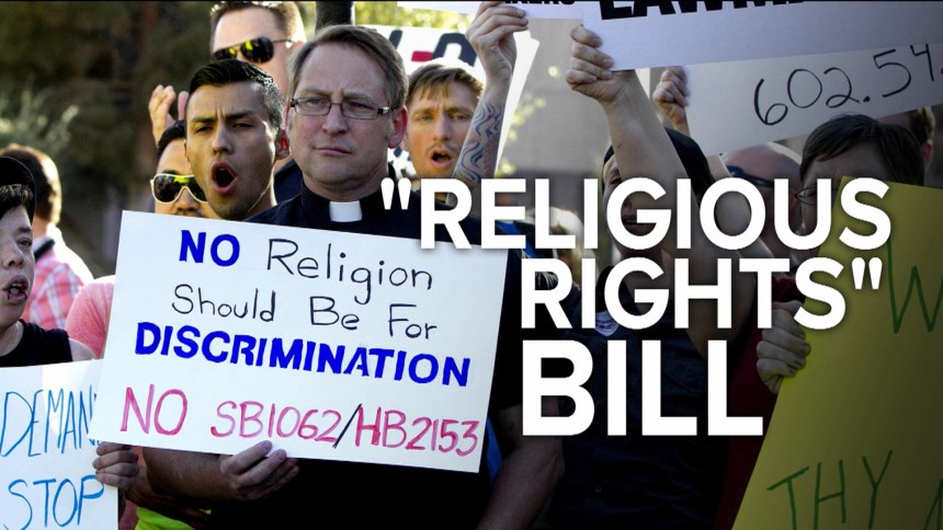 SB 1062 is one of several measures to have surfaced in state legislatures across the country that many believe seek to blunt historic gains for marriage equality and gay rights. The motivation behind the bills, insist proponents, is to guarantee the free exercise of religion for business owners as the barriers to same-sex nuptials collapse. A number of wedding service providers have recently lost in court after refusing to work with same-sex couples based on their religious beliefs. But opponents warn the language of these measures — SB 1062, especially — provide cover to deny a host of basic life needs, like equal pay, not just to gays and lesbians, but also to women and other protected classes of people.