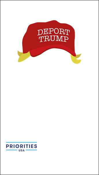 In Nevada, users of Snapchat, the quickly growing social media app popular with millennials, will have access to a geofilter paid for by Priorities USA that adds a Trump cap, complete with little tufts of blond hair, to their selfies. The deportation message is a reference to Trump’s punitive anti-immigration stances, and is targeted to a state that is heavily Hispanic.
