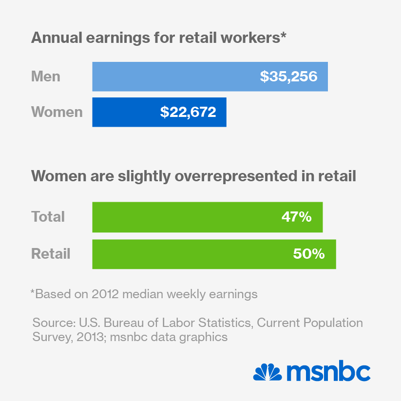 Women earn disproportionately low wages across the entire retail industry, according to a new report from the left-leaning think tank Demos.