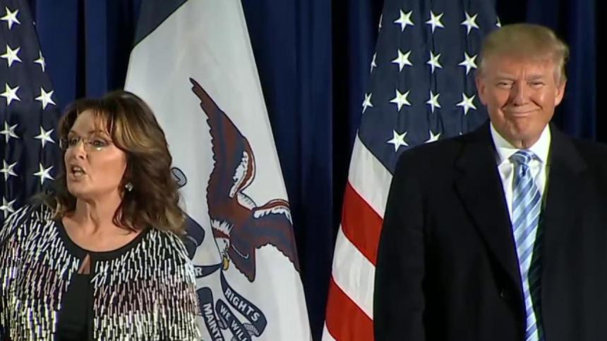 Palin — the vice presidential nominee who first tapped into anti-establishment fervor and was similarly discounted by pundits and politicians alike as a joke before exploding as a political force — endorsed Trump on Tuesday night at a rally in Ames, Iowa.