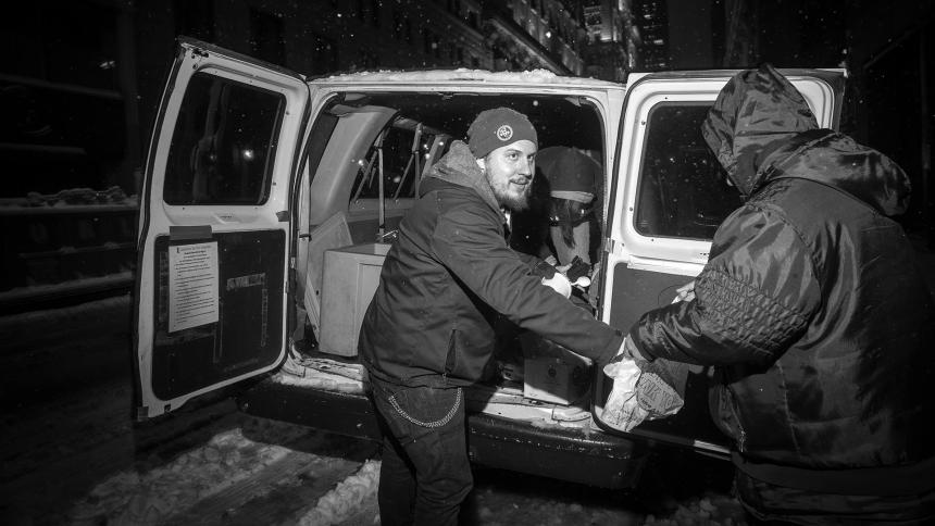 Few New Yorkers were out on the street Monday evening, most already hunkered down in their homes as instructed by city officials. But for thousands without homes, it was just another night. And so Coalition for the Homeless, a privately funded advocacy and direct service organization, went about its business as usual — beginning with its Grand Central Food Program operated at St. Bartholomew’s Church from 5:30 to 7 p.m., and followed by three delivery routes around Manhattan and the Bronx.