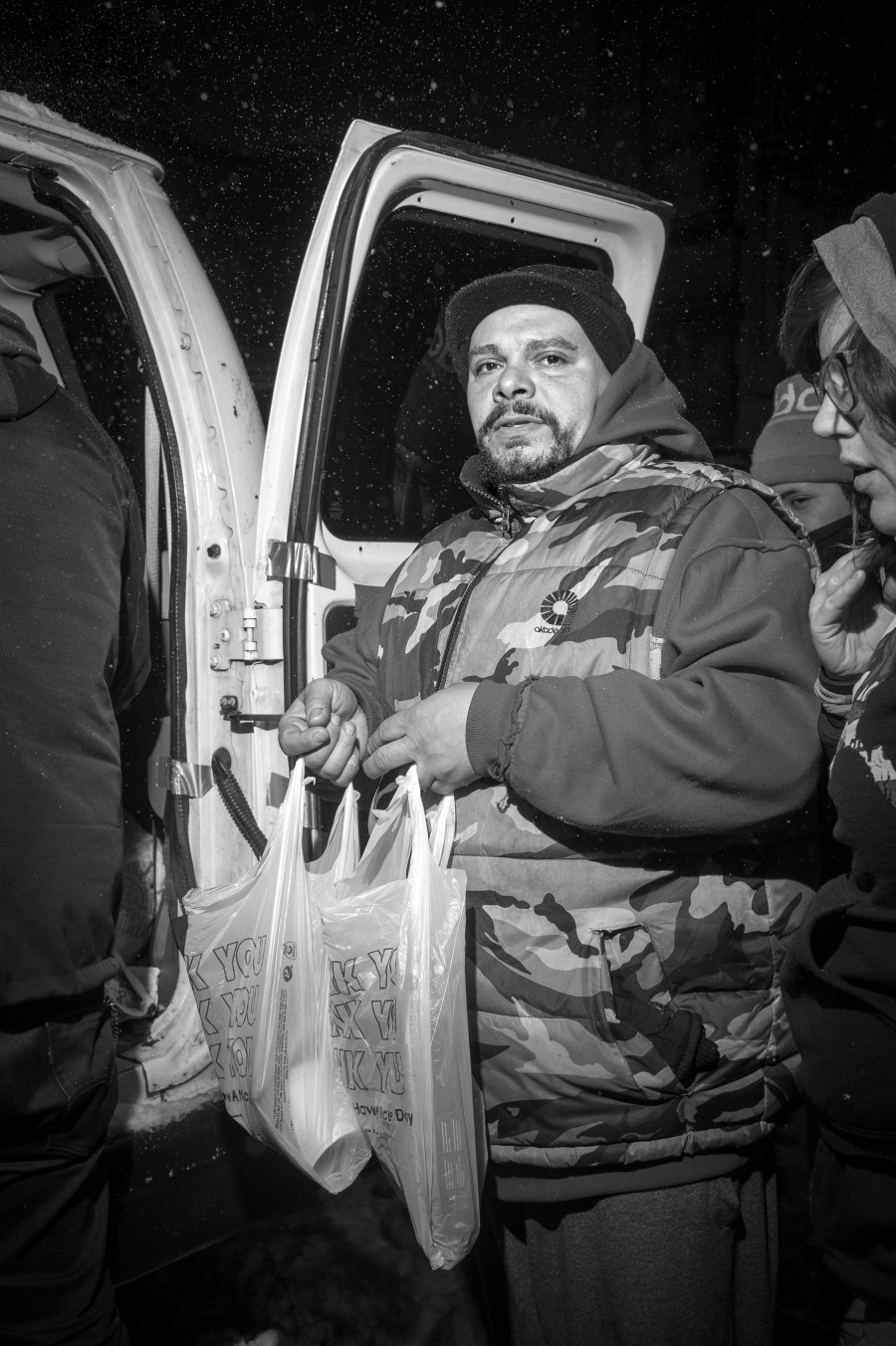 So much hatred — or perhaps, unawareness — that people are willing to risk their lives. On 87th and West End, the third stop of the night, a 61-year-old woman who did not want to give her name gushed over the food and blankets Fitzgerald handed her.