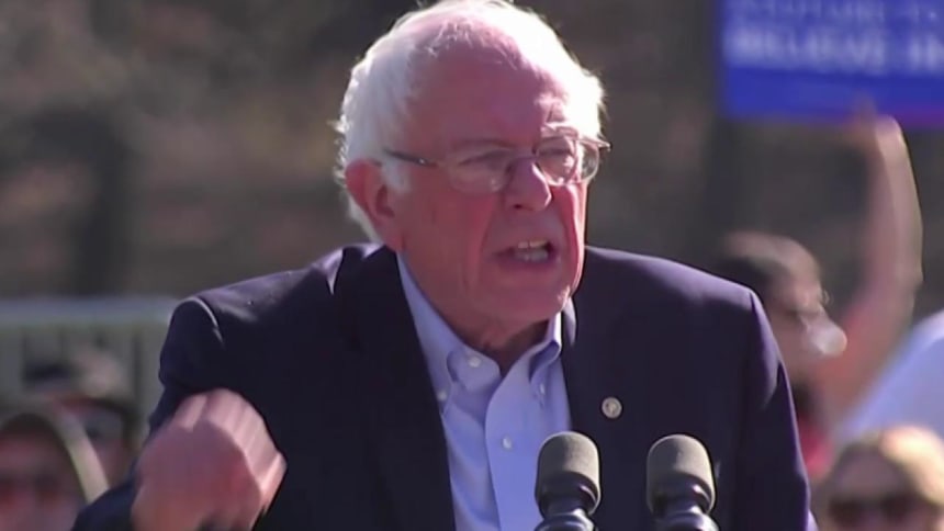 Towards the end of the just over 5-minute clip, Lee juxtaposes the poignant imagery of children reciting the preamble to the Constitution with one of Sanders’ signature rousing stump speeches. An enthusiastic crowd can be heard chanting the senator’s name,