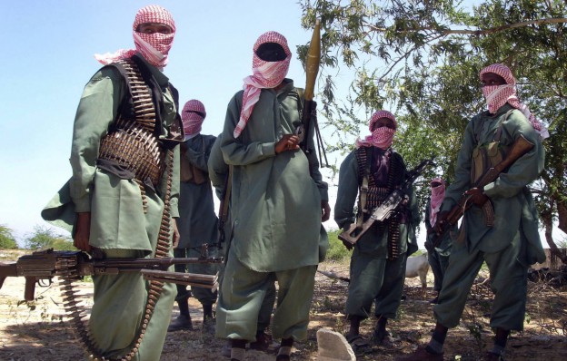Members of Somalia’s al-Shabab jihadist movement are pictured during exercises at their military training camp outside Mogadishu, November 2008. (AP)
