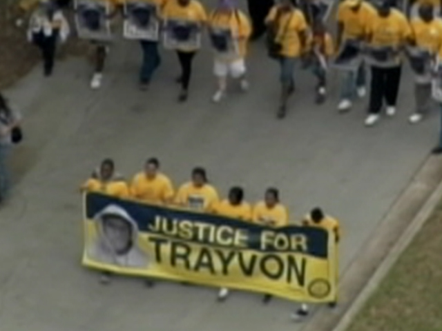 Large crowd gathers outside Sanford police dept. /
