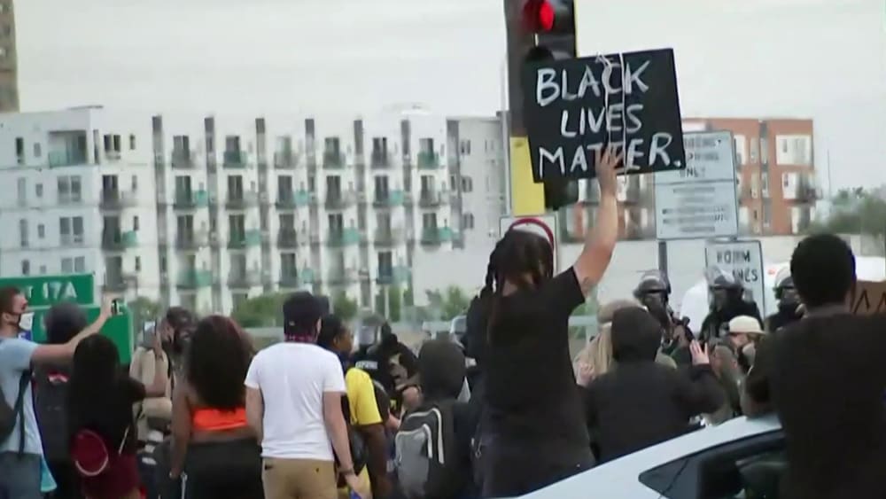 Minneapolis protesters sitting on ramp near I-35