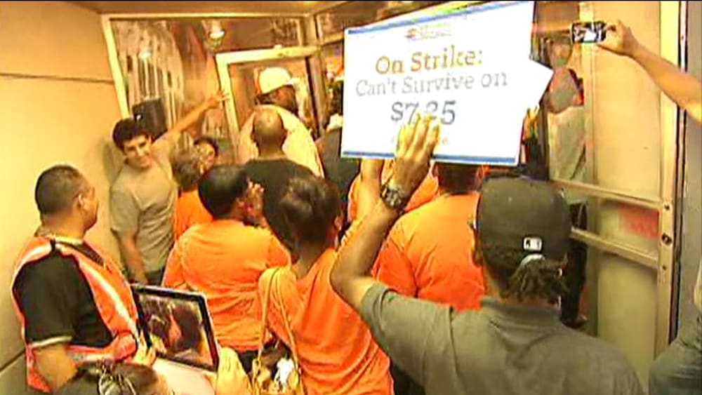 Fast food workers protesting wage /