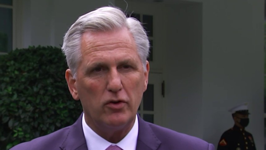 House Minority Leader Kevin McCarthy, R-Calif., met with President Joe Biden at the White House on Wednesday to talk about a potential deal on infrastructure. Afterward, the press asked McCarthy about Rep. Liz Cheney, R-Wyo., getting kicked from her role as conference chair for daring to keep talking about Trump’s attempt to overturn the election.