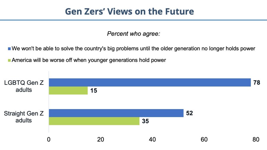 Moreover, our latest data shows that in the past year, Americans have become less supportive of LGBTQ nondiscrimination protections and same-sex marriage, and less opposed to allowing religiously based refusals of service to LGBTQ Americans. Yet our report also shows that despite the hostility they face and their deep distrust of American institutions, queer Gen Zers also maintain a strong sense of resilience.