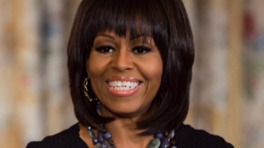 “This is my midlife crisis, the bangs. I couldn’t get a sports car,” Michelle Obama joked. “They won’t let me bungee-jump. So instead, I cut my bangs.”