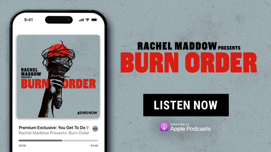 Rachel Maddow tells the story of one of the most shocking decisions in American history in her new podcast, “Rachel Maddow Presents: Burn Order.” This six-part series reveals how an executive order authorizing the roundup of innocent Americans came to be – and a bombshell discovery in the unlikeliest of places that would ultimately expose it all.