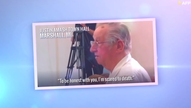 The spot features an older man at a town-hall meeting telling Amash, “This Affordable Care Act, I am going to have bureaucrats telling me what kind of services I am going to qualify for. To be honest with you, I’m scared to death.”