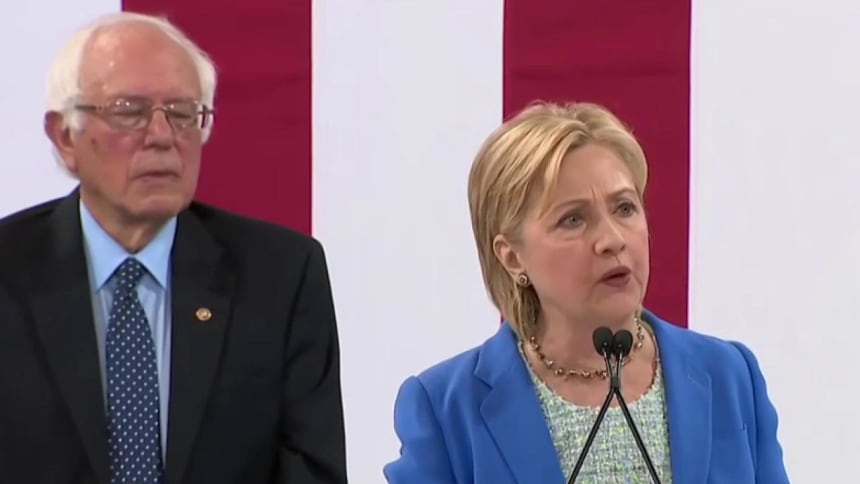 “It is no secret that Hillary Clinton and I disagree on a number of issues. That’s what this campaign has been about. That’s what democracy is about. But I am happy to tell you that at the Democratic Platform Committee which ended Sunday night in Orlando, there was a significant coming together between the two campaigns and we produced, by far, the most progressive platform in the history of the Democratic Party. Our job now is to see that platform implemented by a Democratic Senate, a Democratic House and a Hillary Clinton president — and I am going to do everything I can to make that happen.“I have known Hillary Clinton for 25 years. I remember her as a great first lady who broke precedent in terms of the role that a first lady was supposed to play as she helped lead the fight for universal health care. I served with her in the United States Senate and know her as a fierce advocate for the rights of children.”“Hillary Clinton will make an outstanding president and I am proud to stand with her here today.”