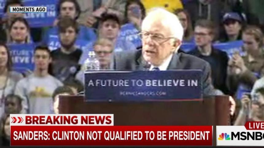 “Now the other day, I think, Secretary Clinton appeared to be getting a little bit nervous,” began Sanders in front of thousands at Philadelphia’s Temple University Wednesday night. “And she has been saying lately that she thinks that I am, quote unquote not qualified to be president,” he said as the raucous crowd booed.“Well let me just say in response, to Secretary Clinton, I don’t believe that she is qualified if she is … through her Super PAC, taking tens of millions of dollars in special interest funds,” Sanders declared.