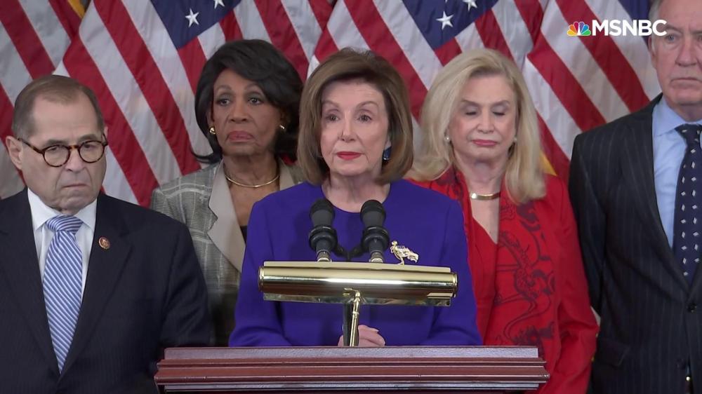 Nadler said the articles of impeachment were being filed in response to Trump allegedly soliciting foreign interference in the 2020 election, compromising national security, threatening the integrity of the upcoming election and concealing evidence from Congress and the American people. Trump, he said, violated his oath of office.