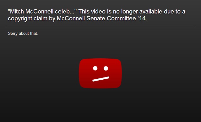 McConnell quickly pulled that ad, but not before Sonka grabbed a copy and preserved it on YouTube. The McConnell campaign then filed a copyright claim, and for a while, Sonka’s clip looked liked this:
