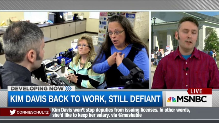 Kentucky’s Kim Davis, arguably the nation’s most infamous county clerk, was let out of jail last week after defying court rulings, her oath of office, and a court order. U.S. District Judge David Bunning specifically ordered the anti-gay clerk, however, that her religious beliefs notwithstanding, she must not “interfere in any way, directly or indirectly, with the efforts of her deputy clerks to issue marriage licenses to all legally eligible couples.”