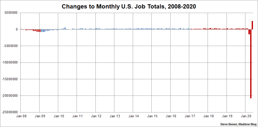 Give that professor a gold star for foresight. At first blush, it appears nearly 21 million Americans were sent home in April, and then a modest percentage of them were brought back in May.