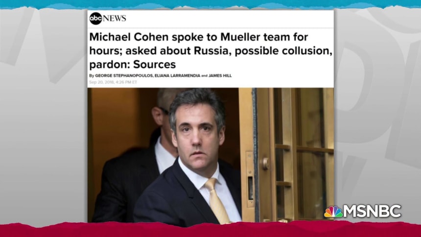 With this in mind, as Rachel noted on the show last night, ABC News had an important report late yesterday on the hours of conversations, over “multiple interview sessions,” between Cohen and Special Counsel Robert Mueller’s investigators. And while that’s important in its own right, of particular interest was the topic of their chats.