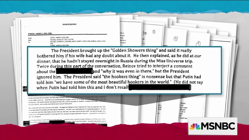MADDOW: The president reportedly telling you, I have a beautiful wife, it has been very painful, can you imagine me, hookers? The president then telling you, according to your own memo, he’s bringing a personal lawsuit against Christopher Steele.
