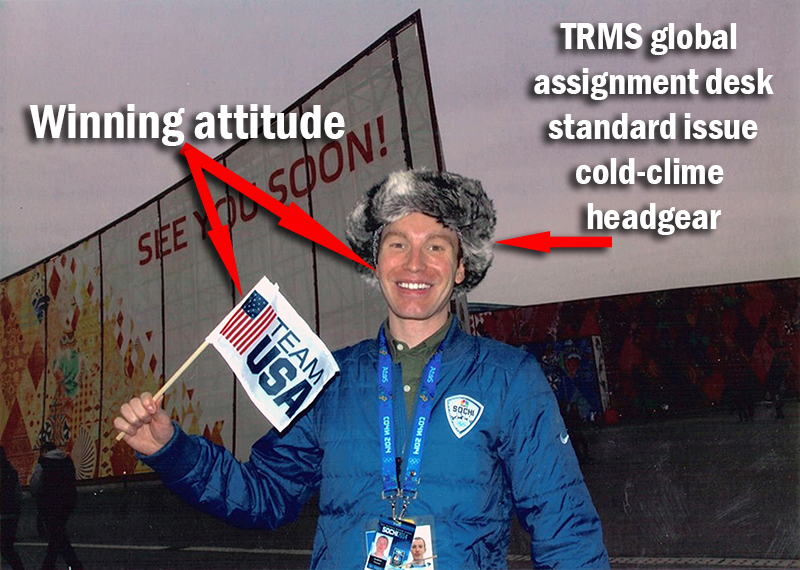 Rachel Maddow Show jib operator, Jon Ciccone, recently took a brief leave from the show. Equipped with a winning attitude and TRMS global assignment desk standard issue cold-clime headgear, he went to Sochi to operate Olympic-caliber jibs on the international stage.