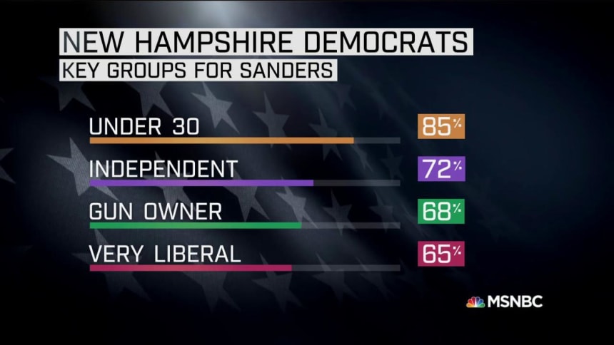 Values and demographics shaped the strong support Bernie Sanders received Tuesday in New Hampshire, according to the NBC News Exit Poll of Granite State Democrats.The Vermont senator won 83 percent of millennial voters under the age of 30. He also won 66 percent of voters who describe themselves as very liberal, and at the same time took 72 percent of self-described independents.
