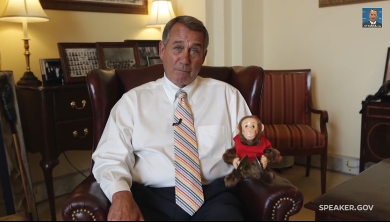 If you heard jokes this morning about House Speaker John Boehner (R-Ohio) releasing a video of himself with a toy monkey, it’s worth noting that those jokes were true.