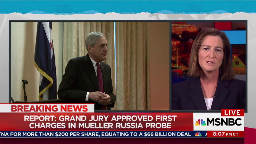 And so, at this point, many of you are probably asking yourself a reasonable question: if we have no idea at this point what the relevant details are, why all the fuss? The first part of the answer is, we now know that Mueller’s and his team’s investigation, far from wrapping up, has persuaded a federal grand jury to approve an indictment against someone involved in the Trump-Russia scandal. Mueller has only been at this post since May, and he’s already taking the probe to a dramatic new level.