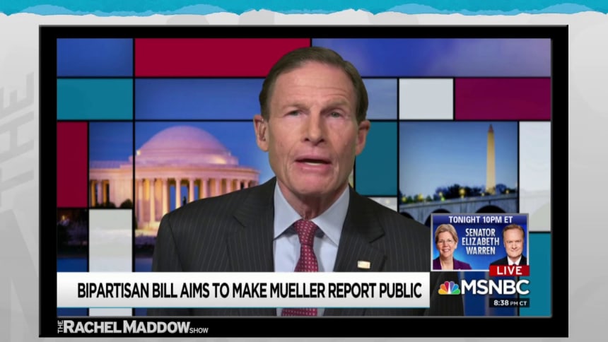Sen. Richard Blumenthal (D-Conn.) was on the show last night, largely to talk about his new bipartisan legislation that would require Special Counsel Robert Mueller — and any future special counsels — to release a public report detailing the findings of a completed investigation. Rachel asked a related question about witnesses who’ve testified before the Senate Judiciary Committee, whose sworn statements were sent to Mueller and his team.